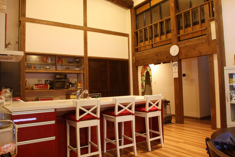 古い家の立派な梁や柱などを生かし、新たな住宅へと生まれ変わりました。古き良き材木を使い、落ち着いた雰囲気の中にも暮らしやすい住宅に仕上げました。以前とは間取りも大きく変更し、生活動線を考え暮らしやすい間取りにしました。リビングには、大きな薪の暖炉を設置。上越地方の厳しい冬でも快適に過ごせます。キッチンも、開放的で使いやすいシステムキッチンに変更。